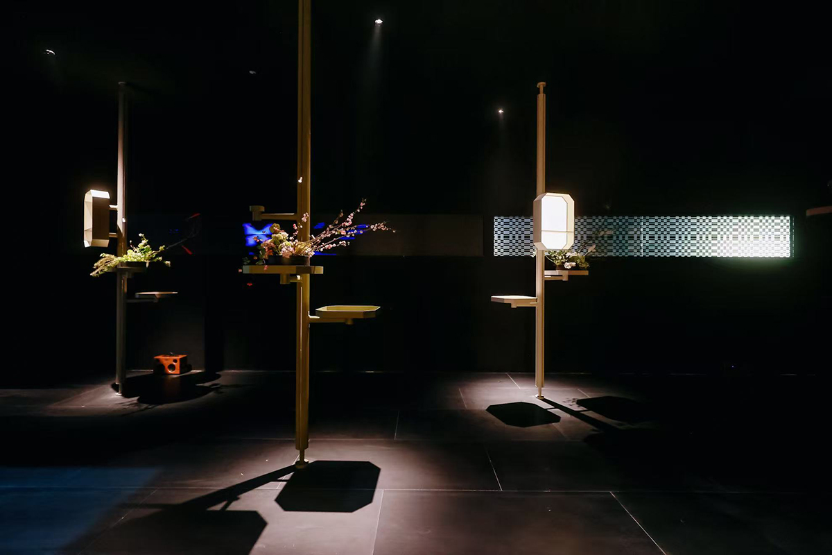 舞台上,舞者身姿与立柱光影交织,似一场无声诗舞剧,诉说着时光与「创造」的故事。舞者的肢体环绕、穿梭于立柱之间,将静态的“柱”转化为动态的“场”,诗意地诠释了空间、人与情感的三重奏。