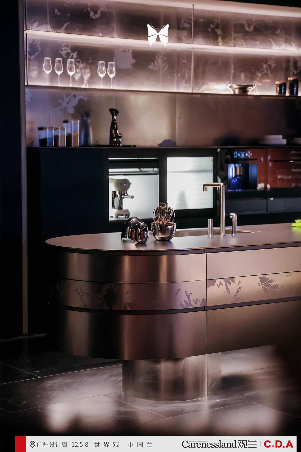 如果说「四季妆成」的创造是温柔的诗意,那么「月光岛台」的创造便是力量与优雅的极致碰撞。这款被誉为观兰年度最大亮点的西厨岛台,以 2 吨重、超 200 万价值的硬核实力,打破中国品牌的价格天花板,更以工艺与设计的双重突破,创造出奢侈品家居的全新标杆。